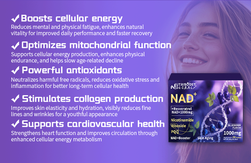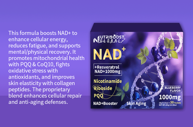Nutriboost Global PQQ NAD+ Berry Flavored Drink Blend for Skin Aging Support, Energy & Focus